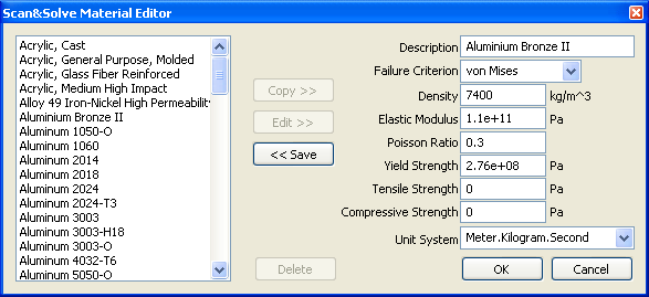- Sélectionner le matériau, standard ou personnalisé.