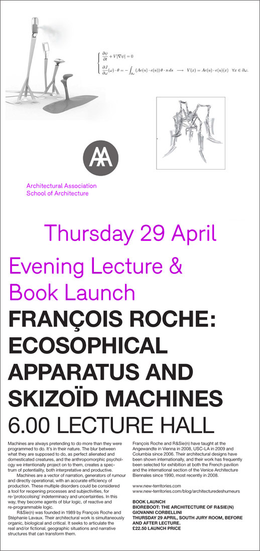 Conférence de François Roche à AA Londres : Ecosophical Apparatus and Skizood Machines