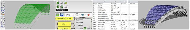 Le groupe Vasari d'Autodesk a récemment dirigé un webinaire et débat centré sur les flux de travail entre Rhino, Grasshopper, Vasari et Revit. Les présentations ont montré la possibilité de transférer des parois, des panneaux, des pièces, des parties de structure et des surfaces de forme libre. Certaines des méthodes montrées se sont prêtées à des transferts bidirectionnels permettant d'utiliser les modes d'analyse de Vasari pour faire tourner des définitions de Grasshopper.