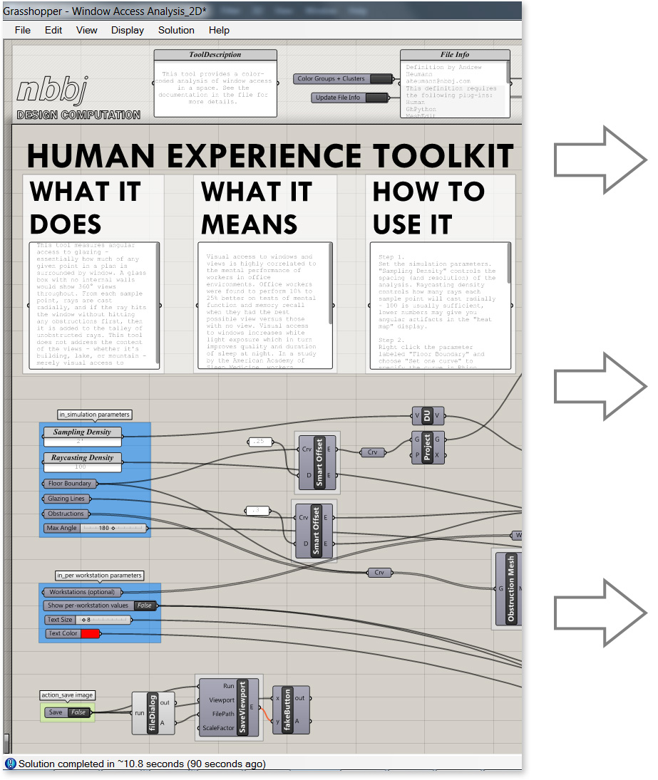ARCHICAD -- comblant le vide entre les premières étapes de conception et la modélisation des données du bâtiment (BIM). Cette connexion unique offre des outils allant au-delà du transfert de géométrie bi-directionnel, permettant la traduction de formes géométriques basiques en éléments de BIM tout en conservant les fonctions d'édition algorithmique.
